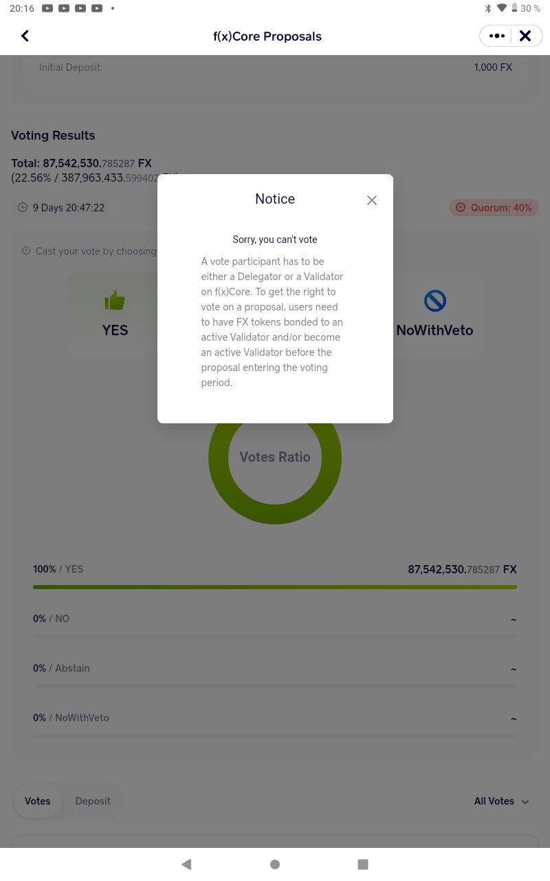 If I vote via the command line, it works, but it doesn’t work that way in the fx-wallet.