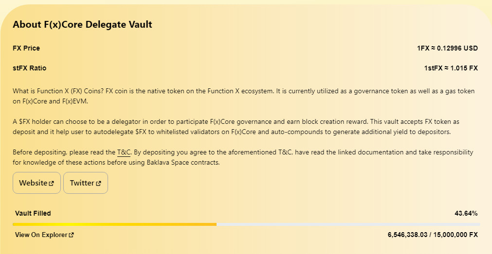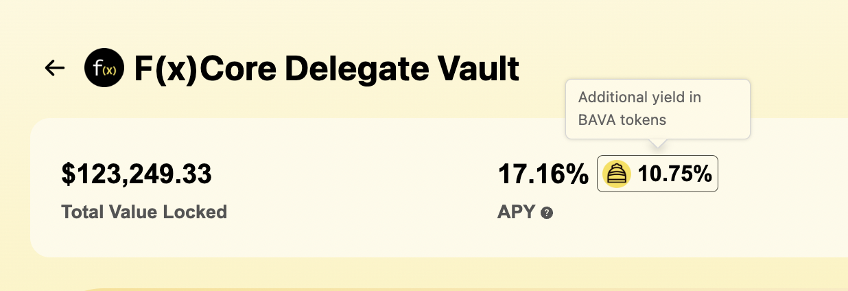 We have increased the vault size to 5 million $FX and added $BAVA rewards as additional yield (~10% APR).
