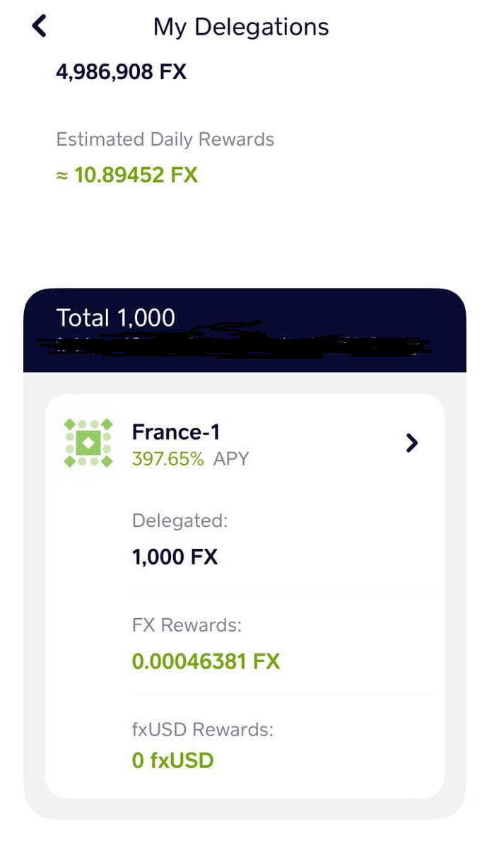 Everything works fine. However, in f(x)wallet app, when configured in testnet mode, we can’t see our own delegation to a testnet delegator.
