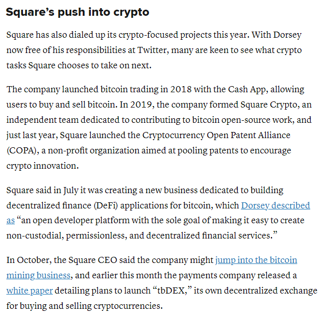 Jack Dorsey stepped down as CEO of Twitter to focus more on crypto and his other company, Square.